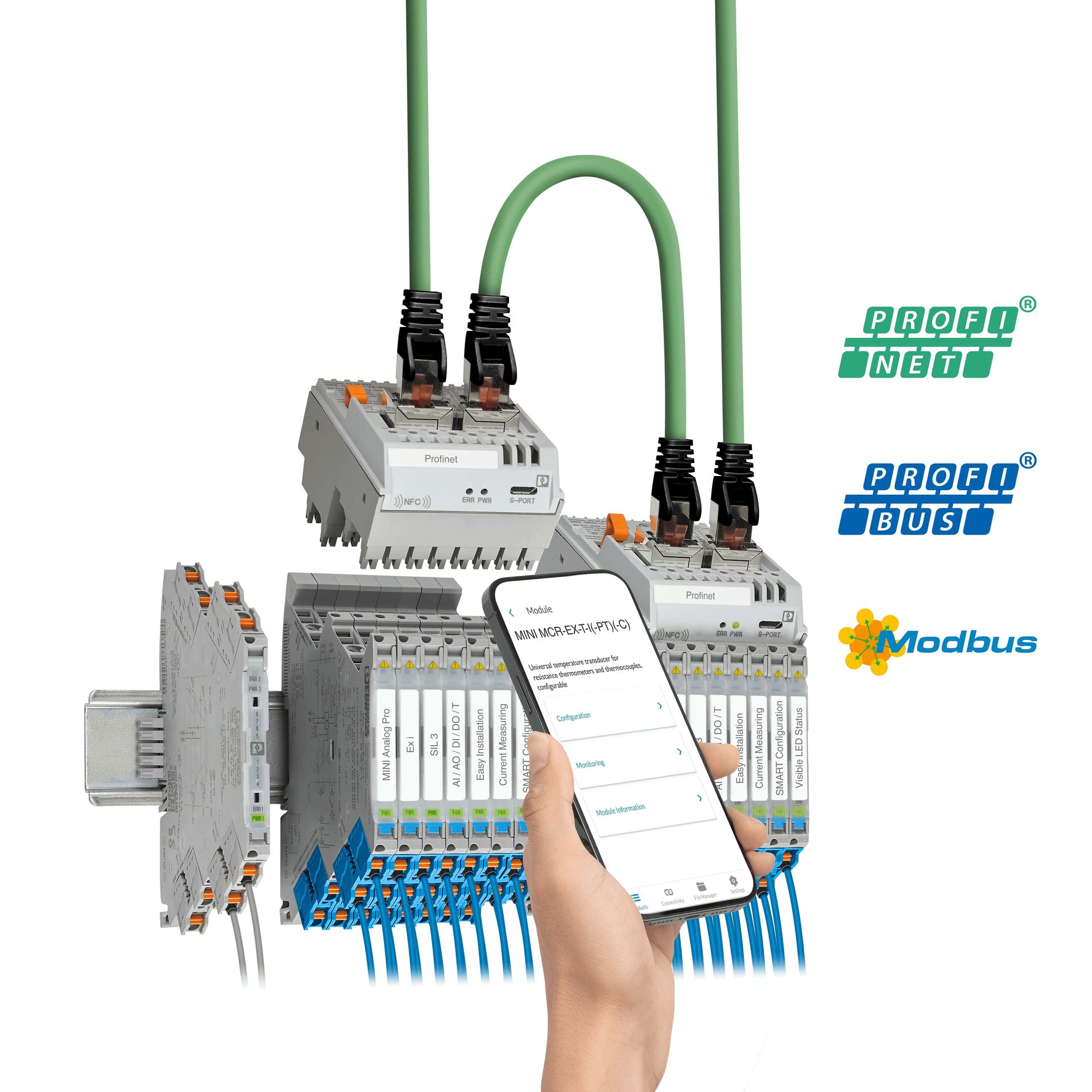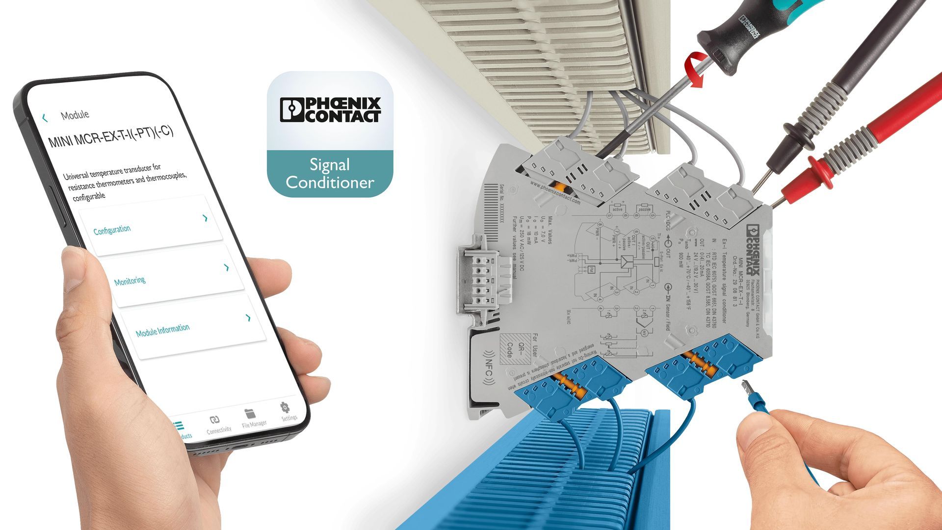 Die Signal Conditioner App ermöglicht es Ihnen, Ihre Produkte so einfach wie nie zu identifizieren und parametrieren sowie Prozesswerte zu monitoren. Außerdem besteht der Zugriff auf modulspezifische Dokumente, wie Packungsbeilagen und Datenblätter. Für Produkte mit DIP-Schaltern steht Ihnen eine DIP-Schaltereinstellhilfe zur Verfügung. Einfache Konnektivität via NFC (MINI Analog Pro), Bluetooth oder QR-Code. Die App ist sowohl für Android- als auch Apple iOS-Smartphones kostenlos verfügbar.